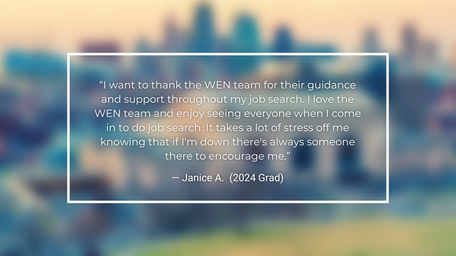 WEN provides wraparound support that addresses both the practical and personal barriers women face when returning to the workforce or pursuing economic independence. Through career exploration, financial education, and personalized support, women gain not only employment but also confidence, stability, and long-term economic mobility.